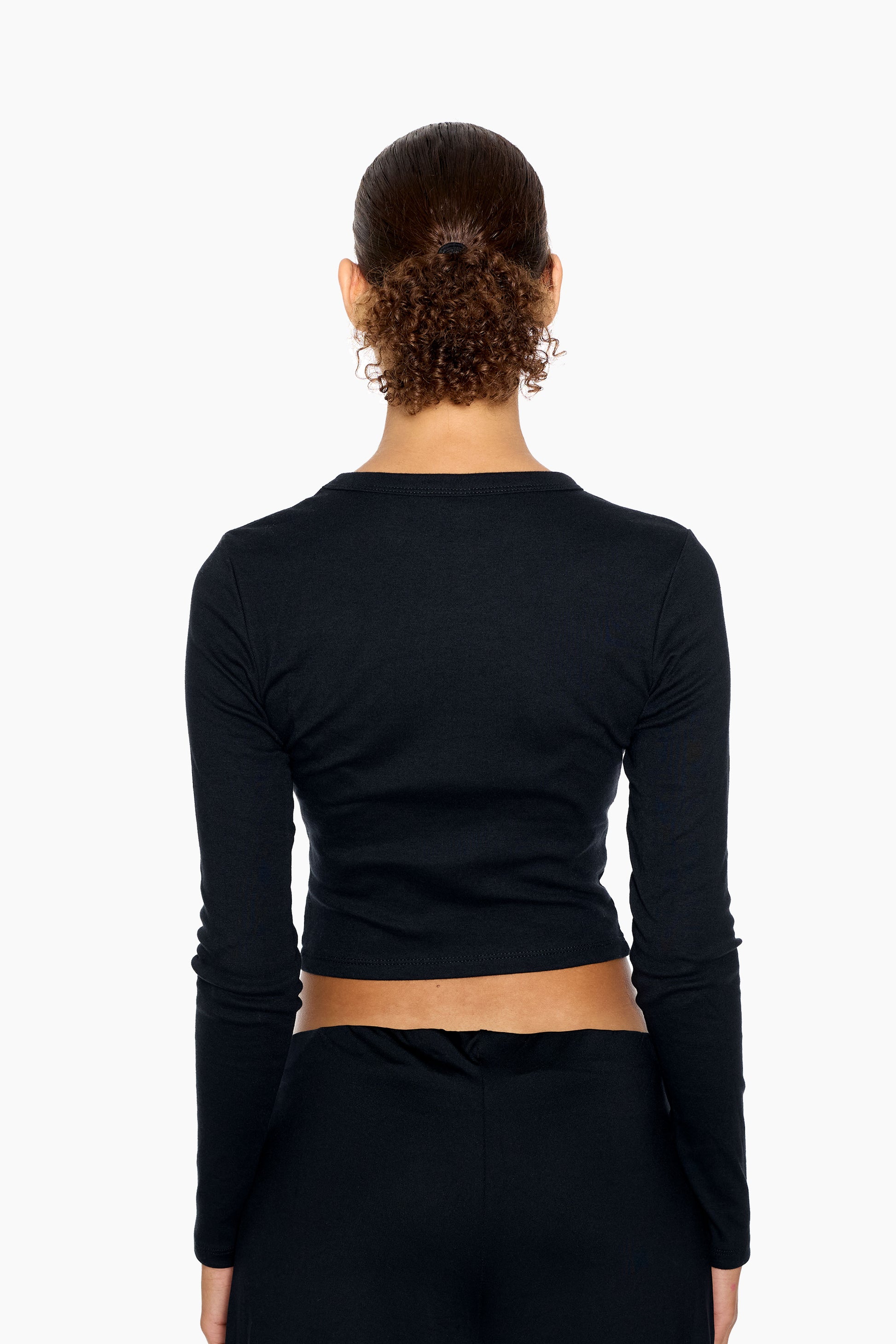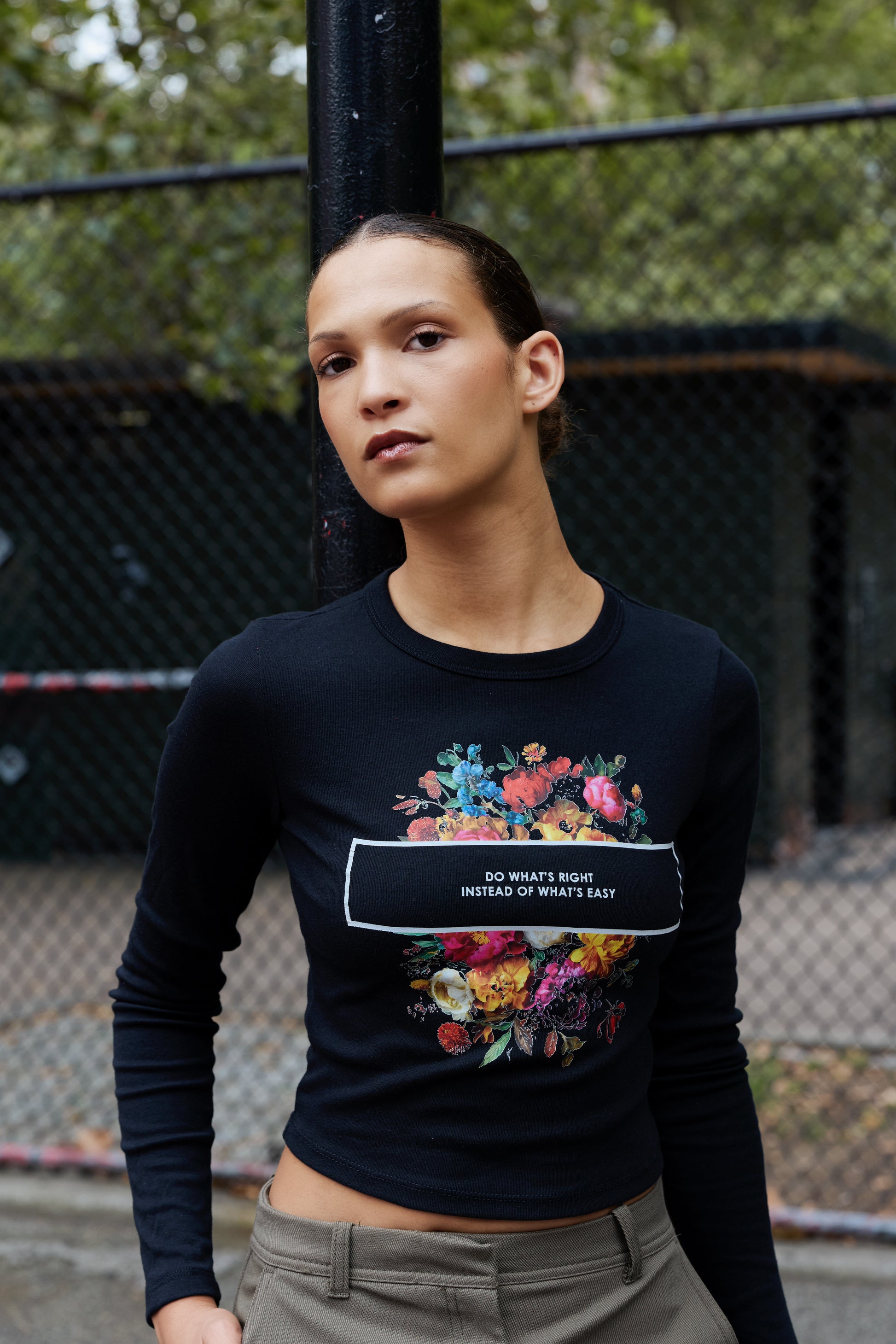 Long sleeve micro ribbed cropped tshirt with "Do What's Right Instead of What's Easy" graphic on the front.