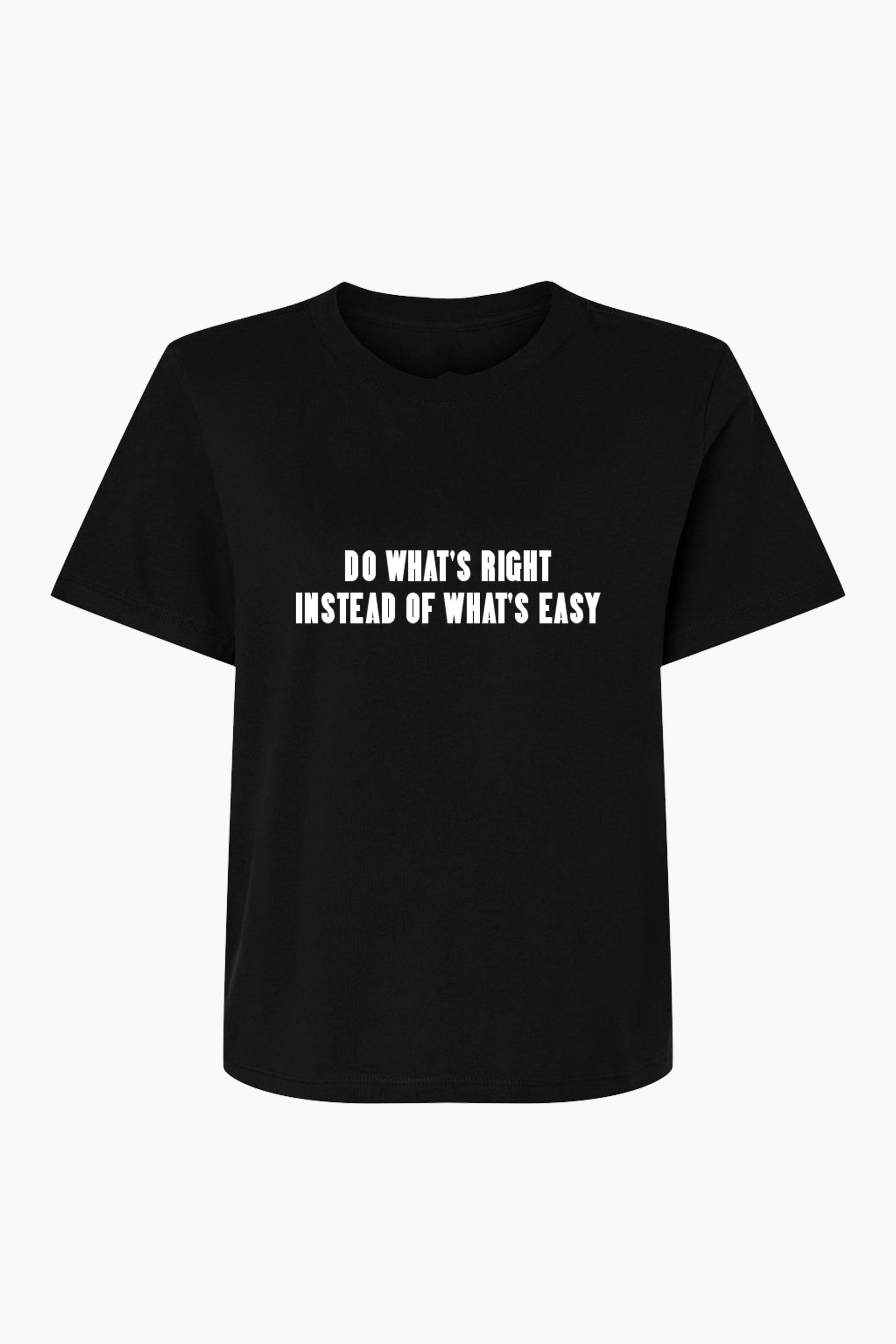 Soft, heavyweight jersey, relaxed fit, drop shoulder t-shirt with "Do What's Right Instead of What's Easy" graphic on the front and an Eleven27 silicone logo on the back.